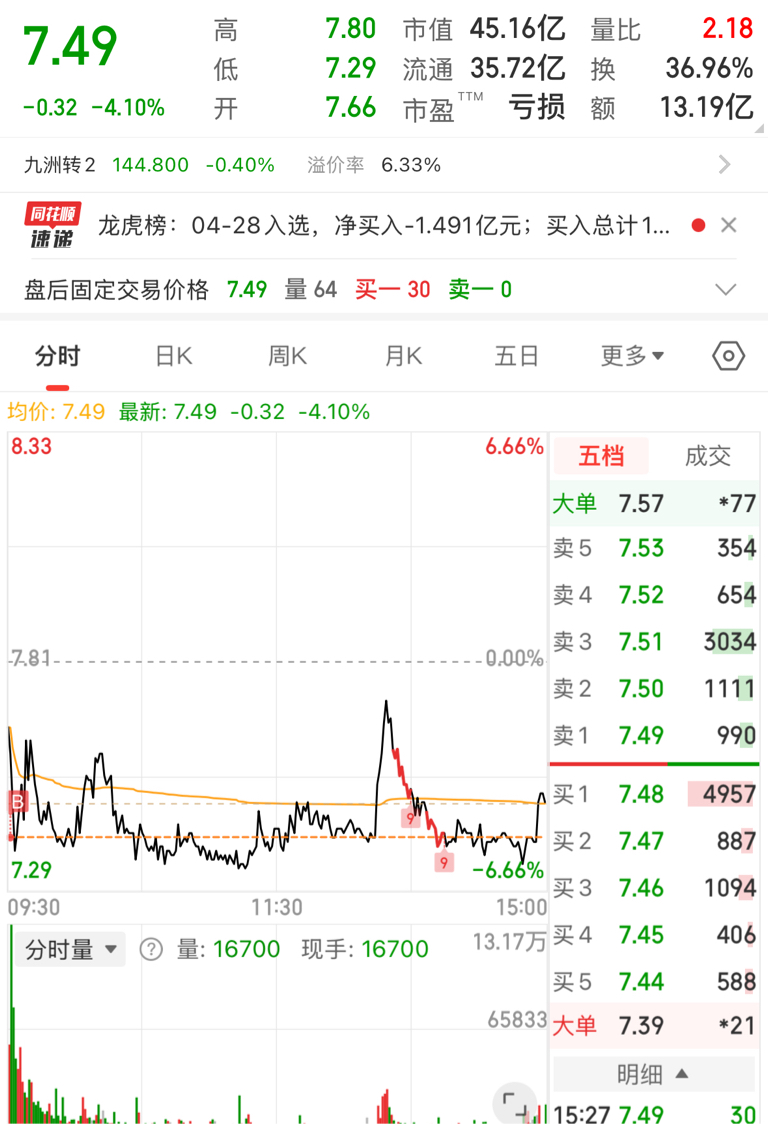 $九洲集团(SZ300040)$ 明天吃肉还是吃面