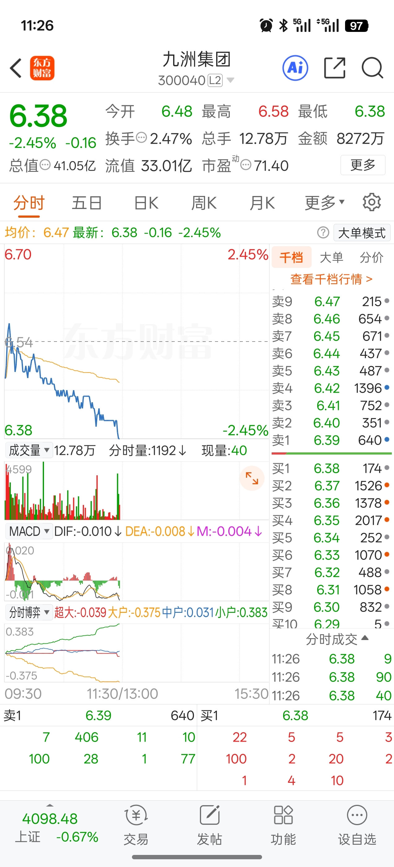 $九洲集团(SZ300040)$ 不害羞的东西,人跌你又跌,好像拉过板似