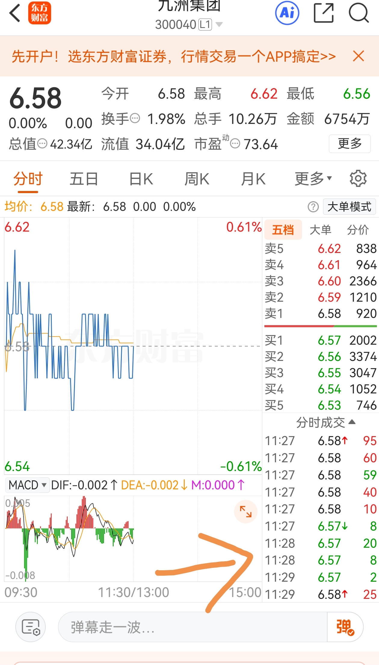 $九洲集团(SZ300040)$ 一分钟成交两笔,死股