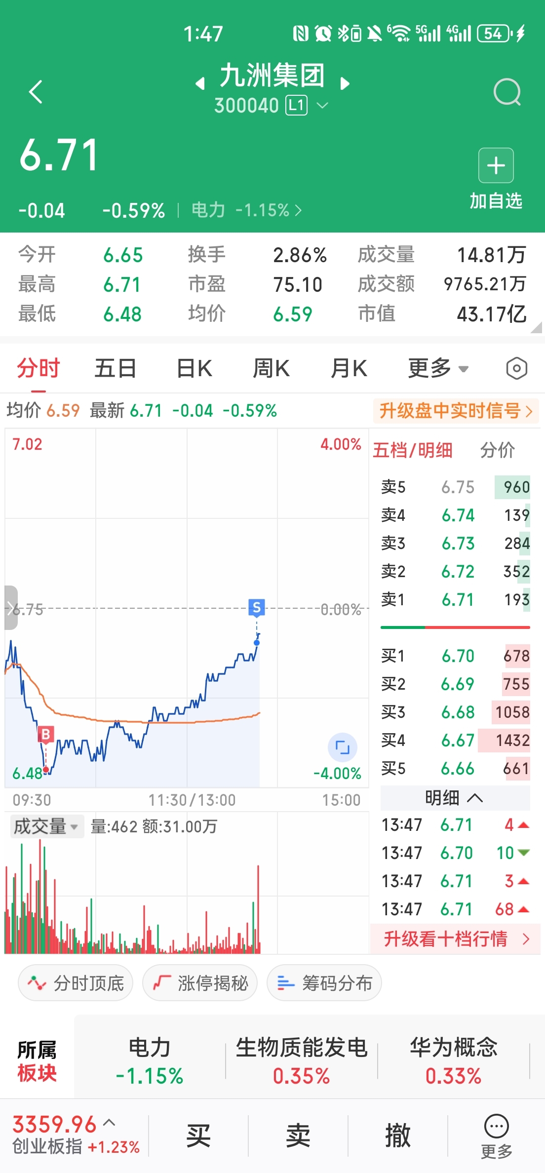 $九洲集团(SZ300040)$ 做了个T