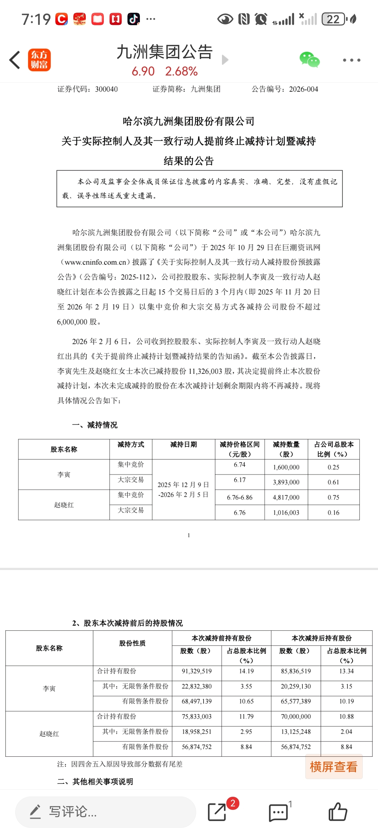 $九洲集团(SZ300040)$ 靴子落地,提前终止减持计划,星期一来一波