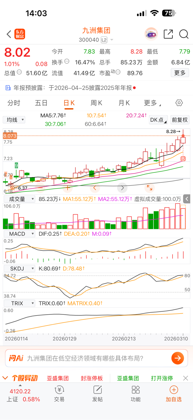 $九洲集团(SZ300040)$ 拉垮,白瞎这么好的趋势