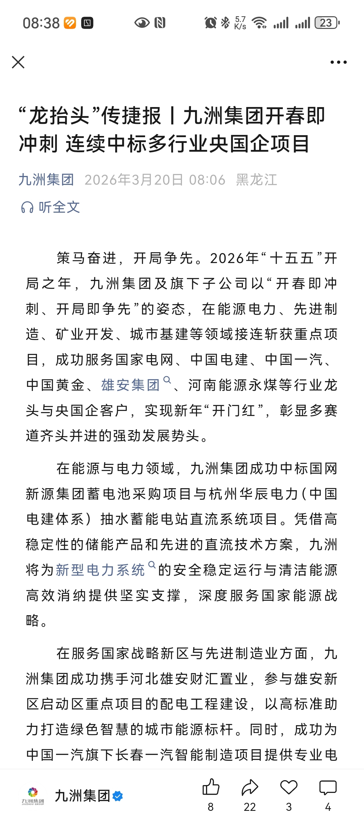 $九洲集团(SZ300040)$ 今天争气点,涨停
