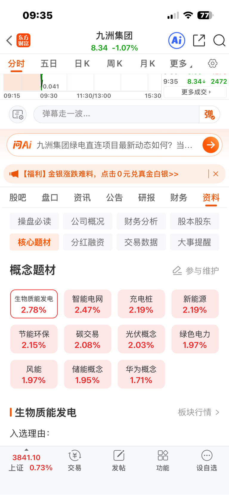 $九洲集团(SZ300040)$ 板块全红大涨,你绿?