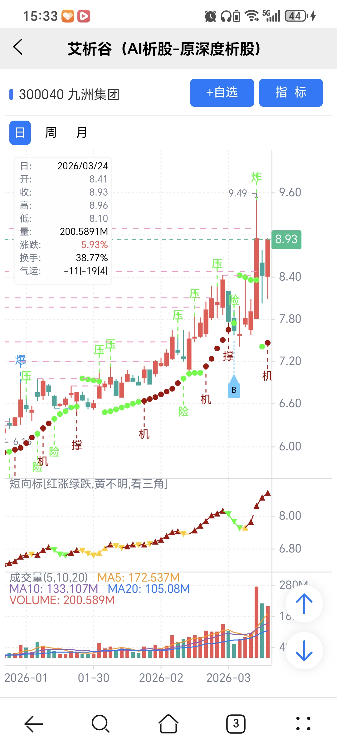 AI模型选股,量化指标识别关键点,简单技术分析确定买卖点,结合量化和人工综合运用,才能有优势。九洲集团