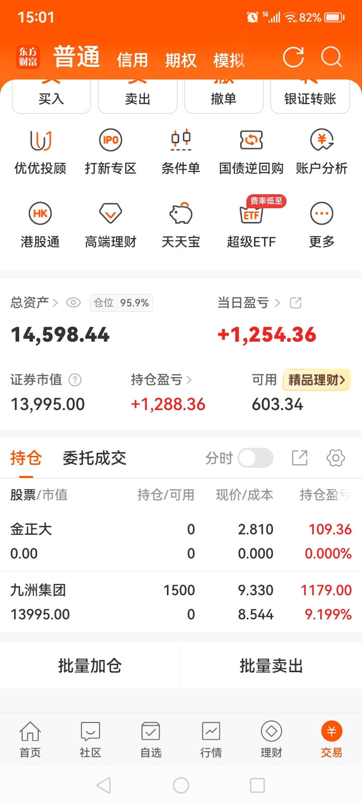 $九洲集团(SZ300040)$ 1.18万实盘第48天