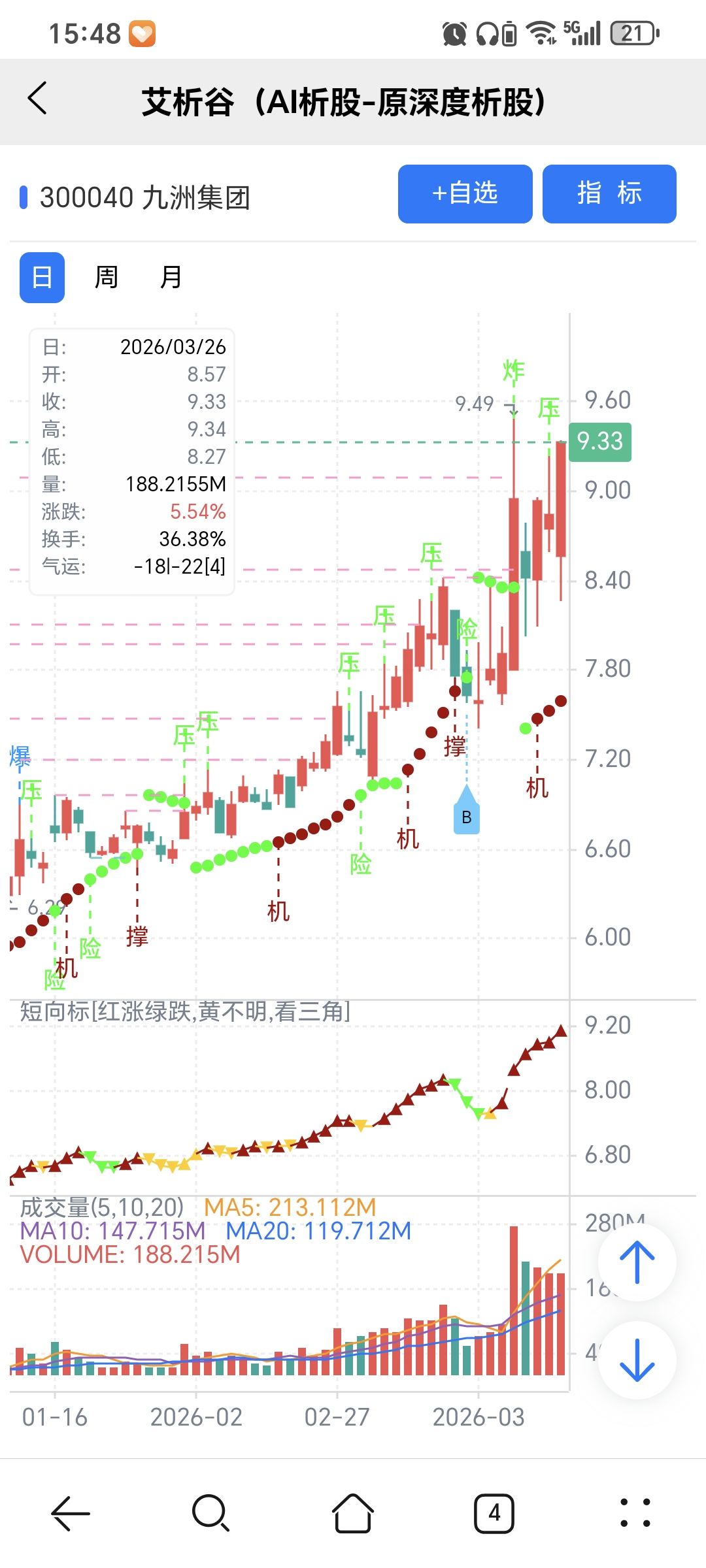 AI模型选股,量化指标识别关键点,简单技术分析确定买卖点,结合量化和人工综合运用,才能有优势。九洲集团