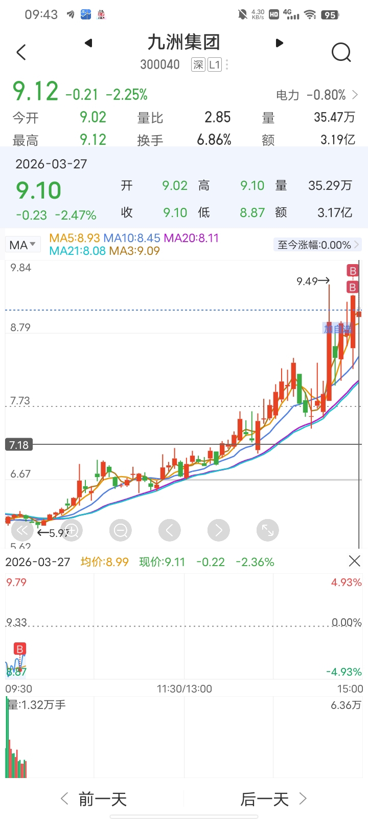 $九洲集团(SZ300040)$ 8.95+2层