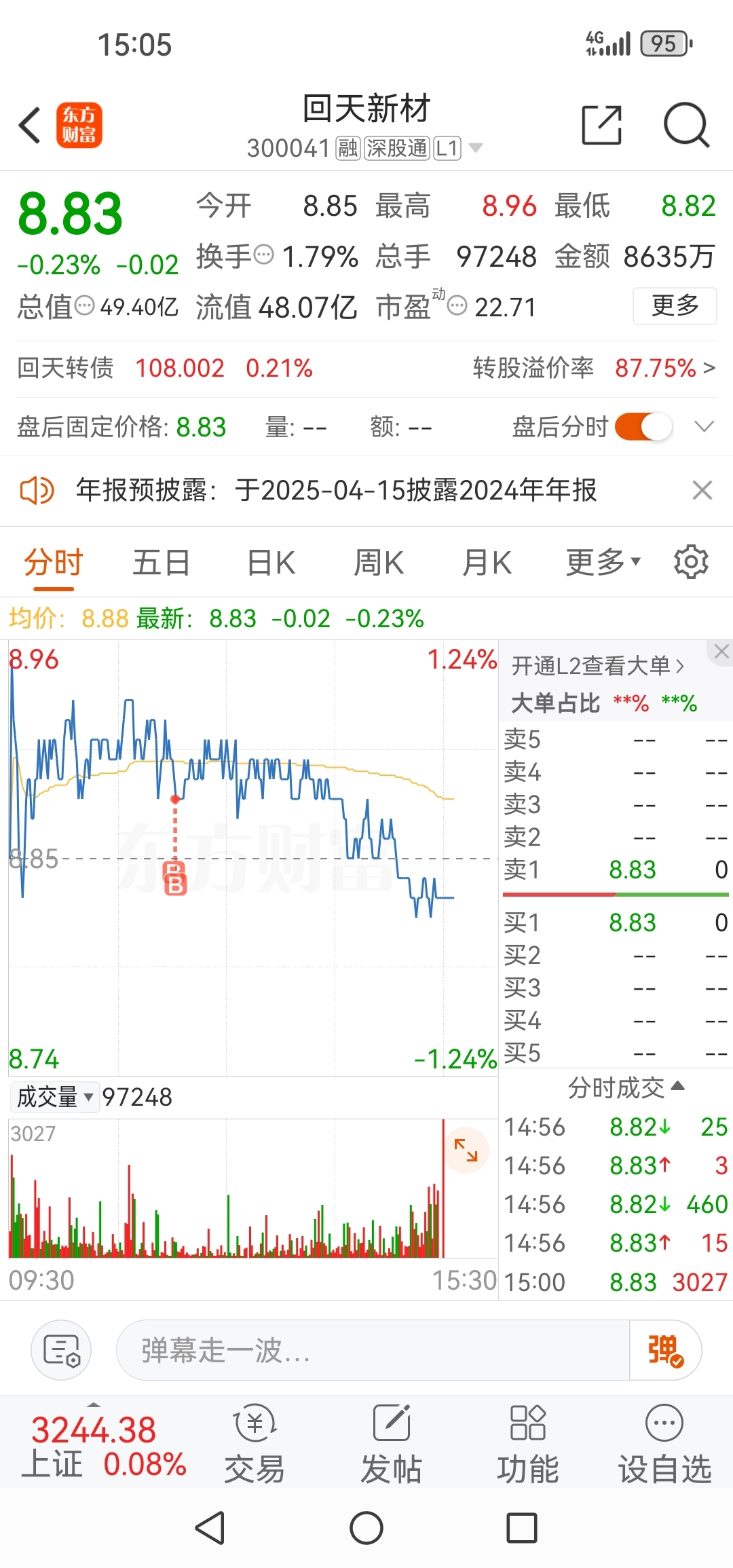 $回天新材(SZ300041)$ 不用盯盘,尾盘买入多么的好。不急不急,等待等待