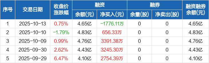 回天新材:融资净偿还1776.11万元,融资余额4.65亿元(10-13)