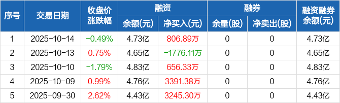 回天新材:融资净买入806.89万元,融资余额4.73亿元(10-14)