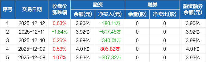 回天新材:连续3日融资净偿还累计1137.57万元(12-12)
