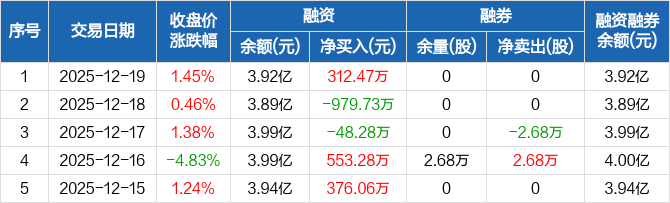 回天新材:融资净买入312.47万元,融资余额3.92亿元(12-19)