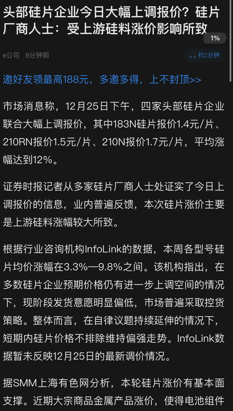 商业航天你粘不上、军工你粘不上、包装材料你也粘不上。。那么硅片涨价你也不粘?光伏