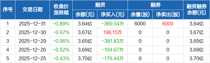 回天新材:融资净偿还369.54万元,融资余额3.64亿元(12-31)