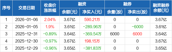 回天新材:融资净买入590.21万元,融资余额3.67亿元(01-06)
