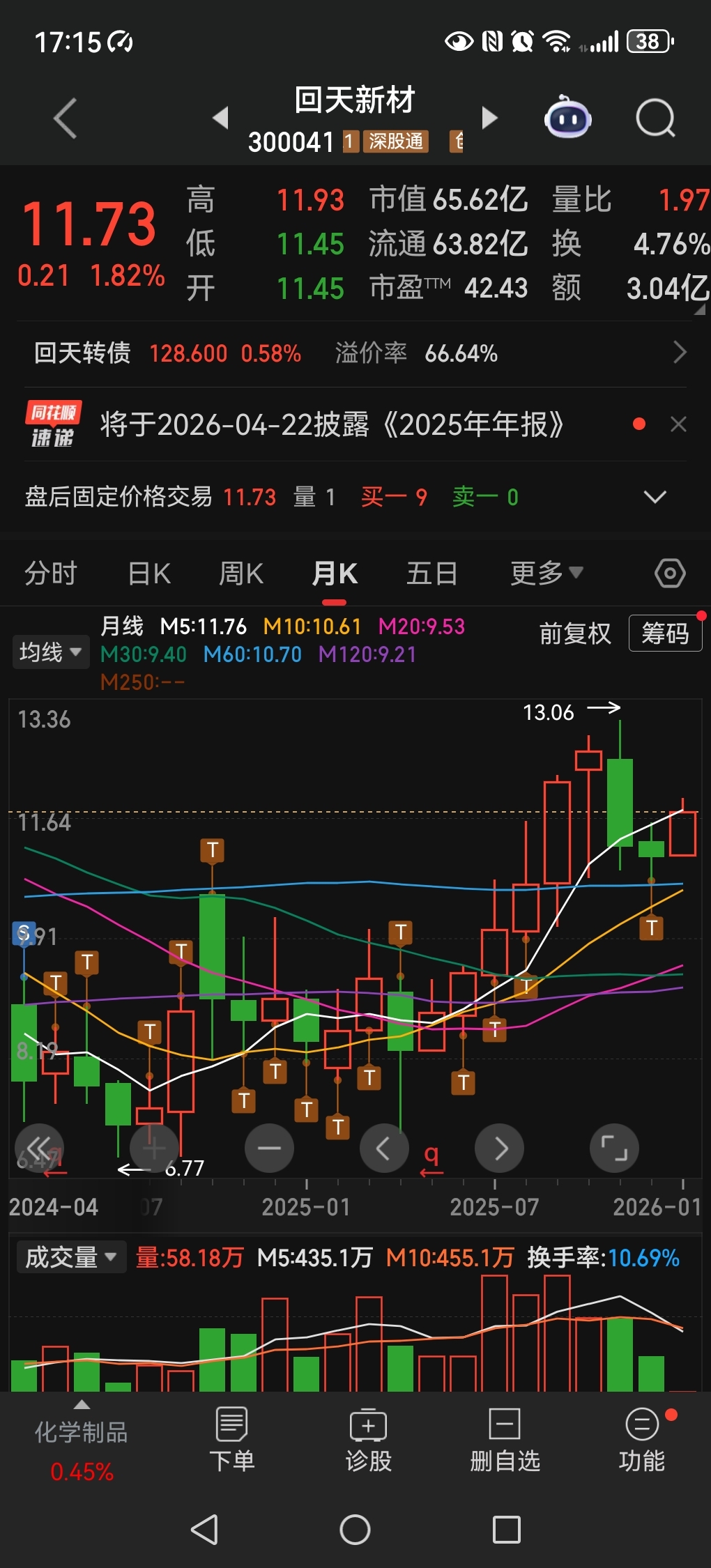 $回天新材(SZ300041)$ 经常TT小蟑,今天尾盘挪过一部分,明天冲高就跑