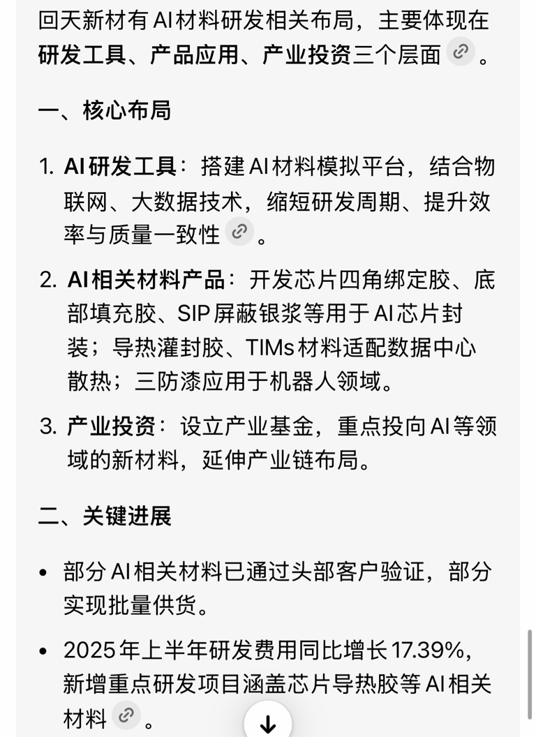 志特新材有AI材料研发,已经5个20厘米了,回天新材也有AI材料研发,但是涨1个