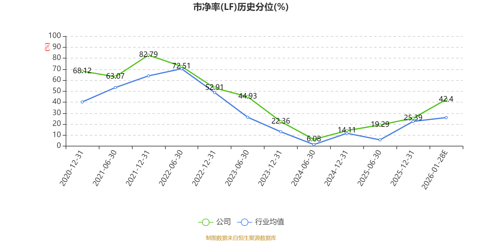 市盈率、市净率为负时,不显示当期分位数,会导致折线图中断。