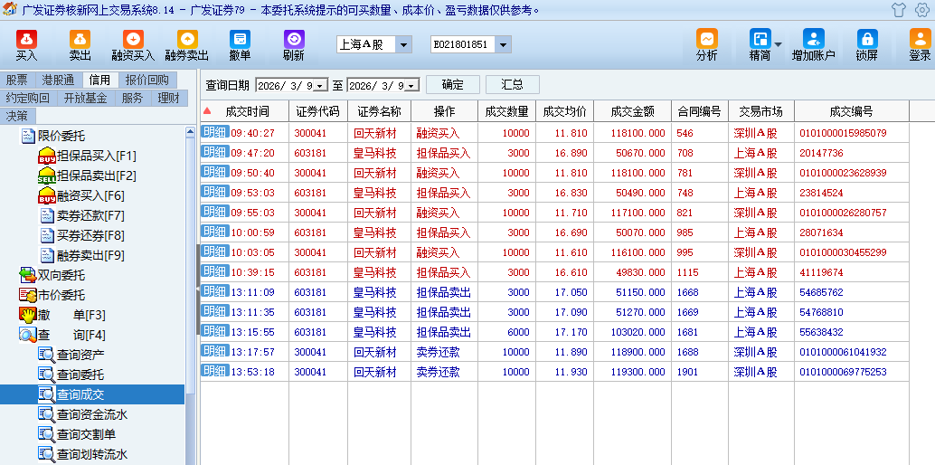 感谢主力们今天的暴力砸盘,在回天新材和皇马科技上又做了个差价。回天还要20000股没有T出,后面再看看。主力你敢砸破11.00,我就敢再大量加仓跟你干。