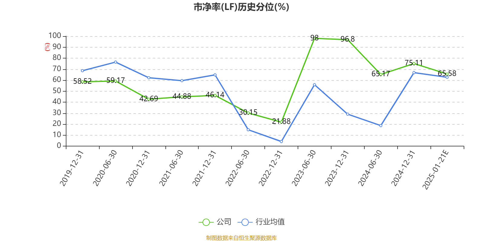 市盈率、市净率为负时,不显示当期分位数,会导致折线图中断。