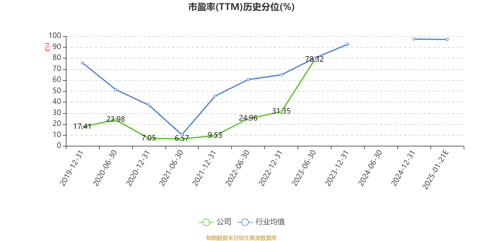 以本次披露业绩预告均值计算,公司近年市盈率(TTM)图如下所示: