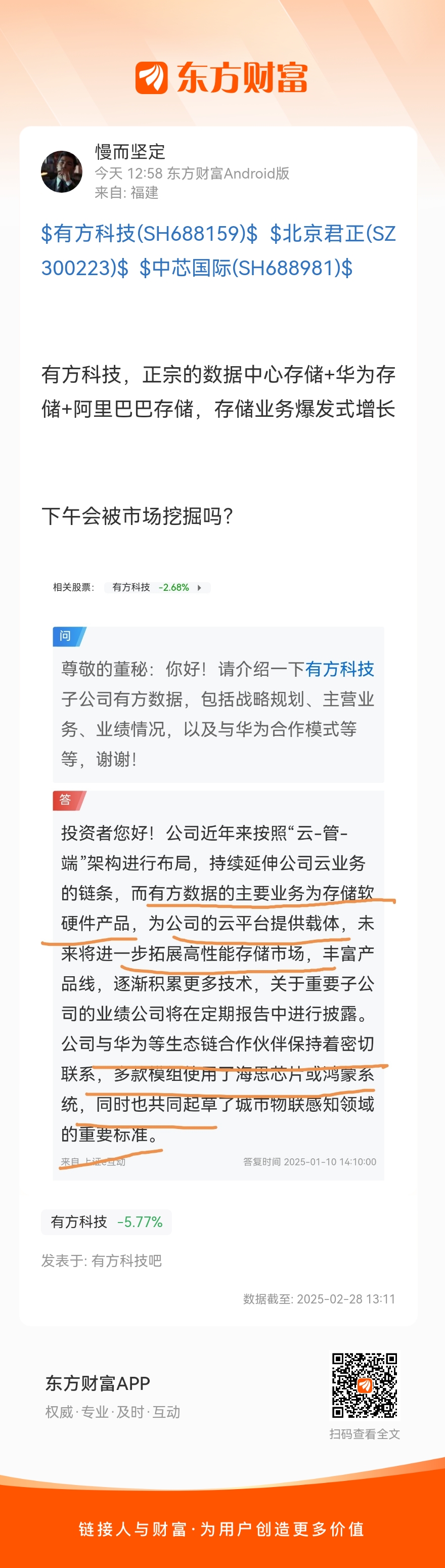 $朗科科技(SZ300042)$$翱捷科技-U(SH688220)$$芯原股份(SH688521)$有方科技,数据中心存储+华为存储+阿里巴巴存储,业绩爆发式增长