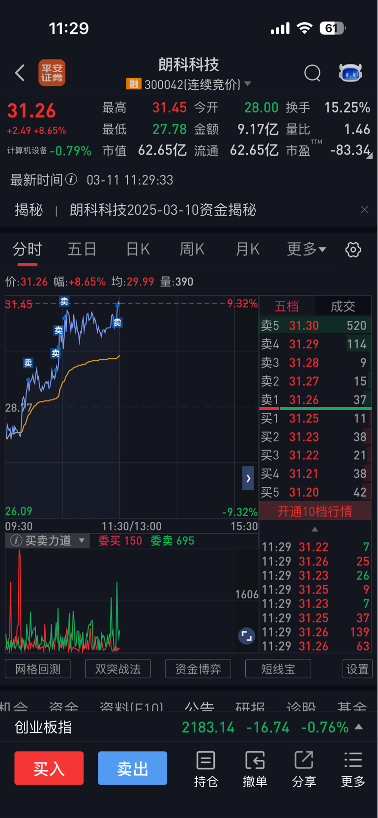 $朗科科技(SZ300042)$ 昨天自己预感今天十厘米、结果早上不但没加仓还一路卖飞。
