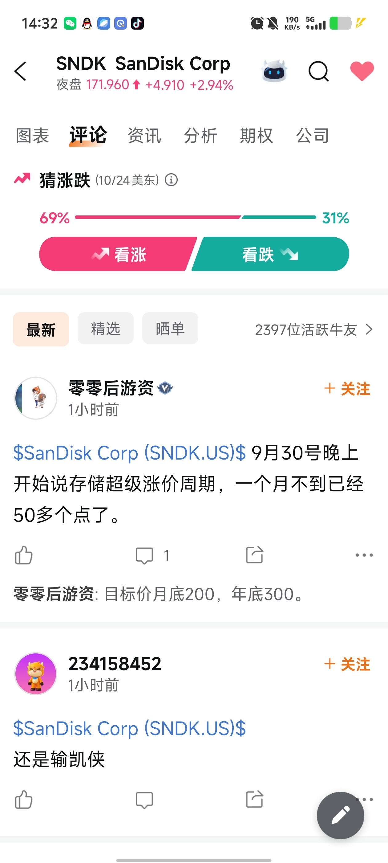 $朗科科技(SZ300042)$ 闪迪夜盘涨了,估计今晚开盘又是10个点,下周接着奏乐接着舞
