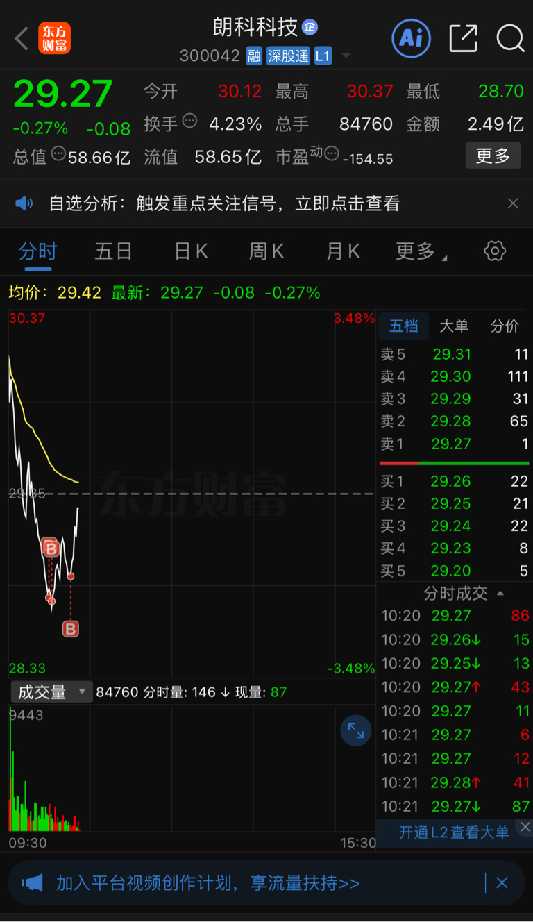 $朗科科技(SZ300042)$ 不信邪,加仓了,希望能让我笑到收盘。