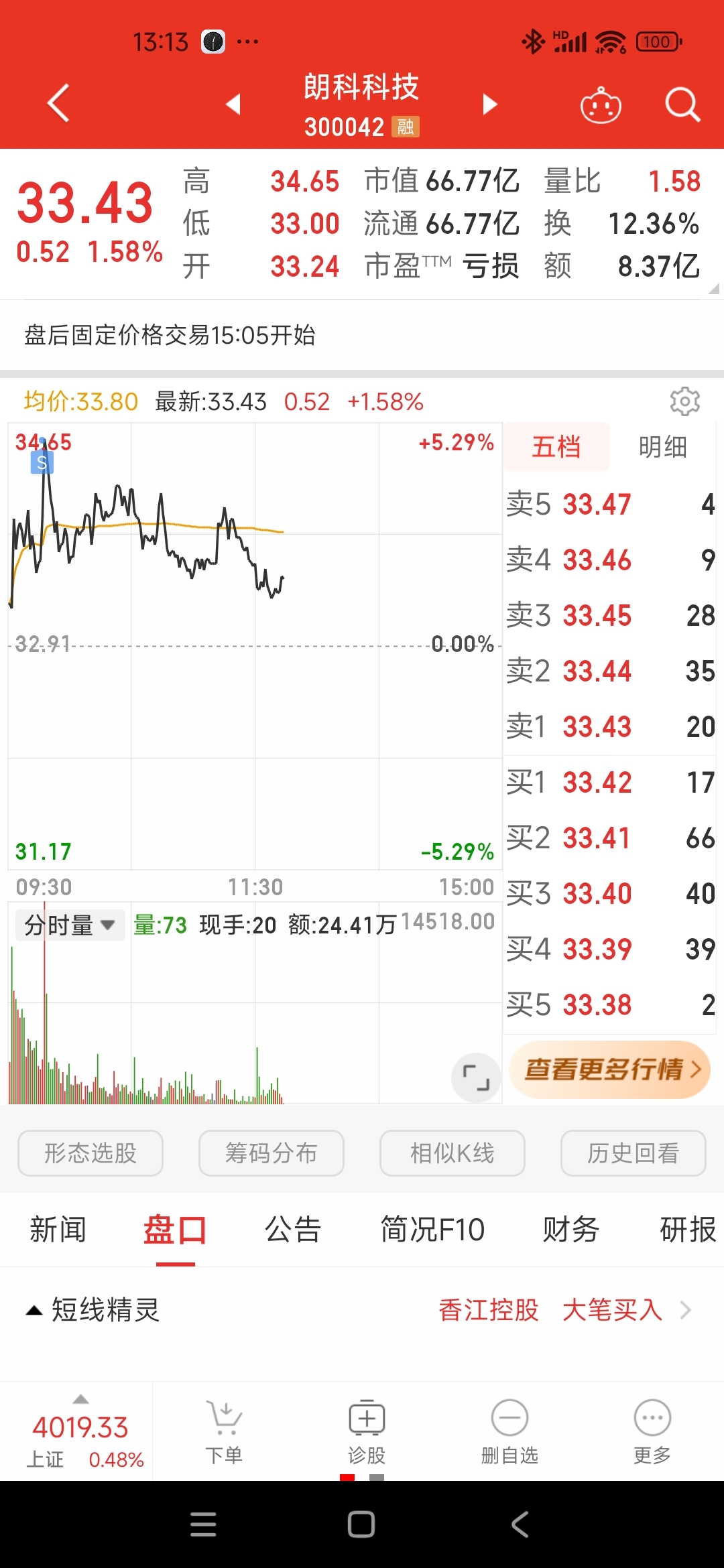 10w顺利入仓,拜拜啦朗科,等你回落到25元左右时咱们再玩儿!