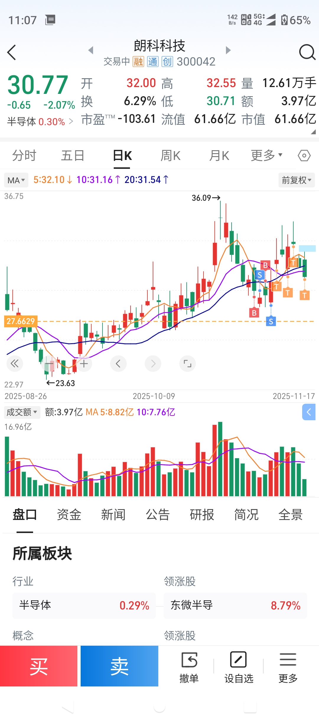 $朗科科技(SZ300042)$ 你们没掌握这个股的精髓,玩这个得使劲T他,30买的,成本T到27了