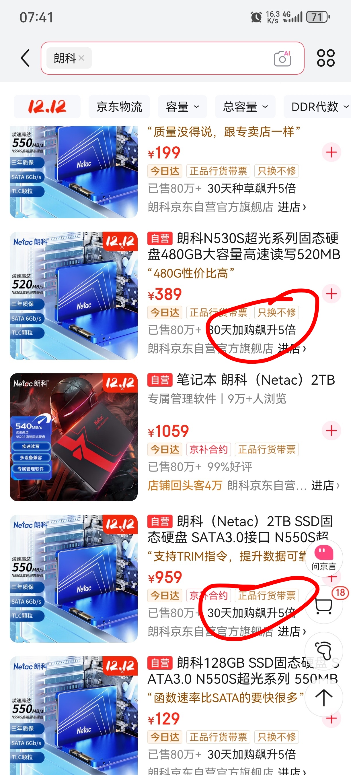 $朗科科技(SZ300042)$ 多年国内内存知名品牌,京东持续热销近一月加购翻5倍。新产能(企业级ssd)、新项目(智算服务器)业绩待释放,低市值低位潜力股。随着$闪迪(NASDAQ|SNDK)$ $美光科技(NASDAQ|MU)$ 反弹确认开启二波继续上涨,下周国内存储有望跟着反弹,逢低关注机会,不追高!