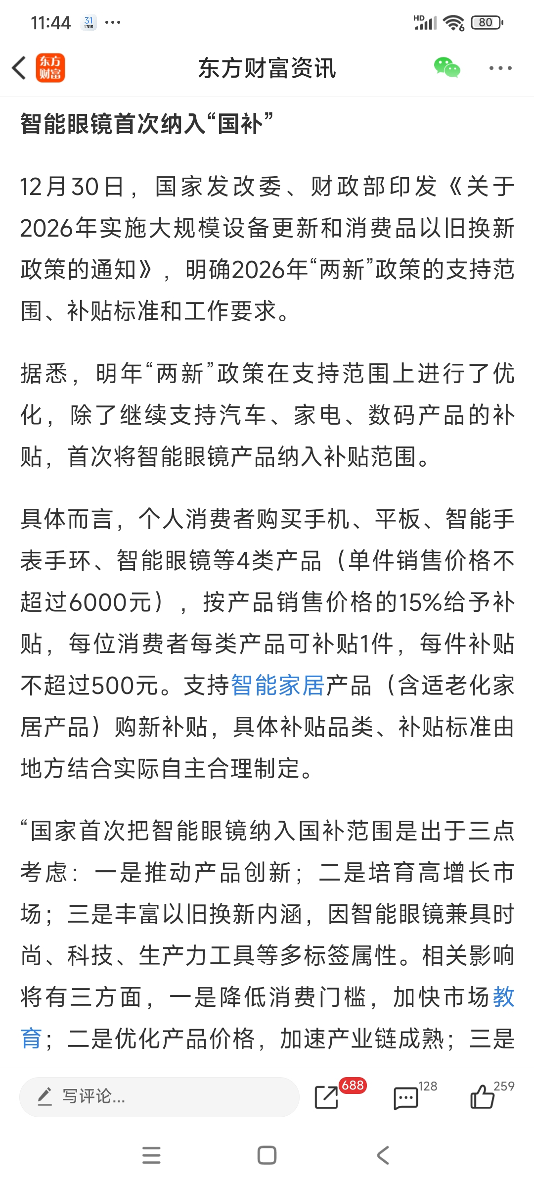 Ai眼镜首次纳入国补,大利好