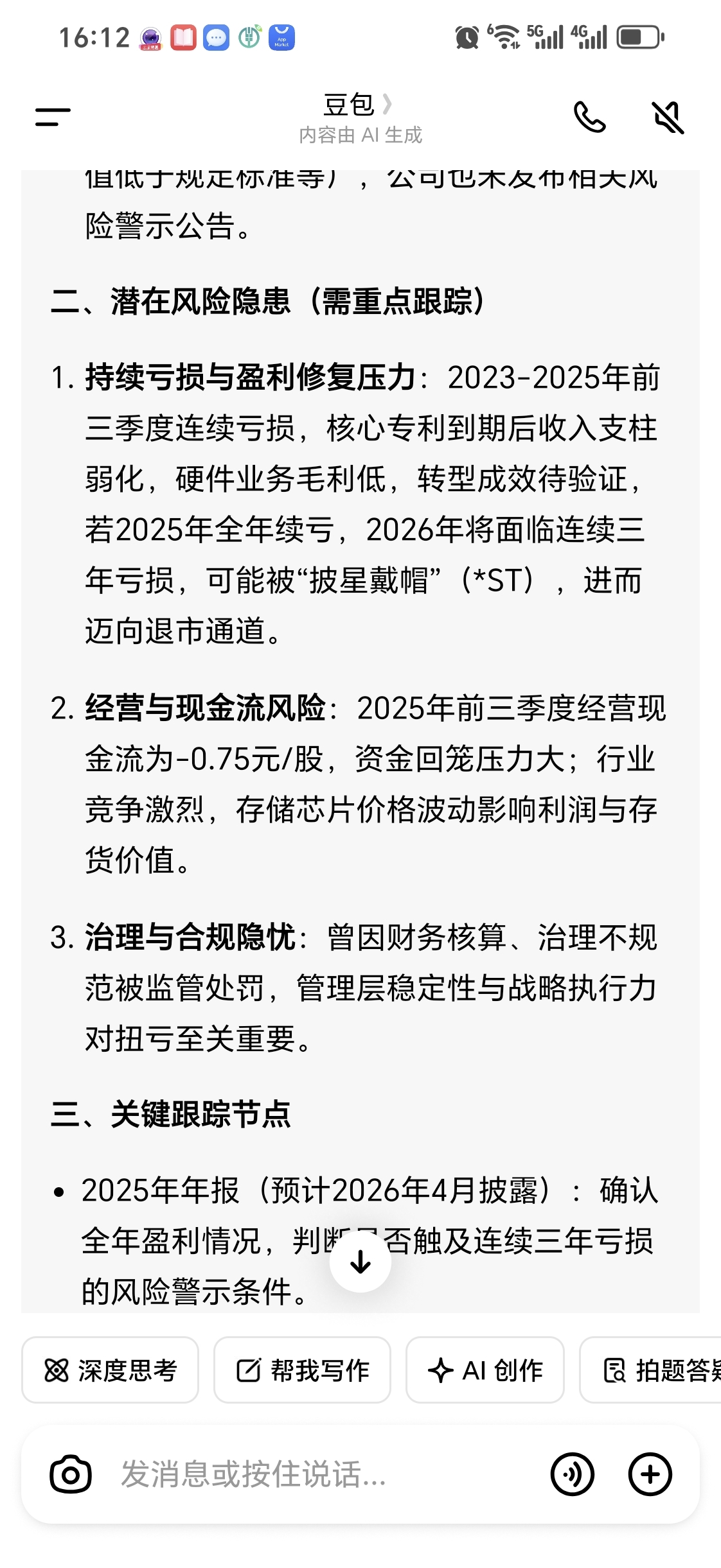 今天建仓一万股,28.15,忘记豆包了,显示如果2025亏损,有退市风险?看来明