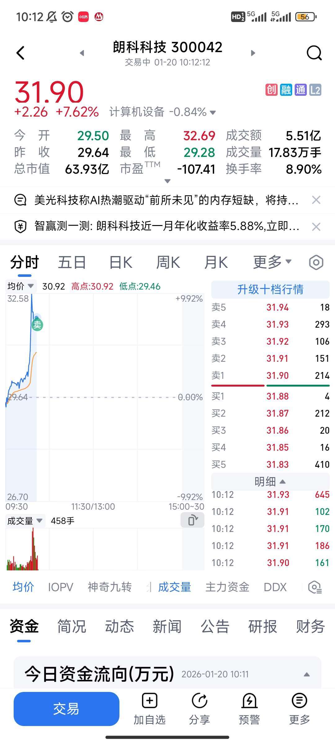 $朗科科技(SZ300042)$ 拿了一个月,就等一根大阳线或者20厘米跑。。。等的好久。8个点跑了,没卖在最高点,还是说声感谢