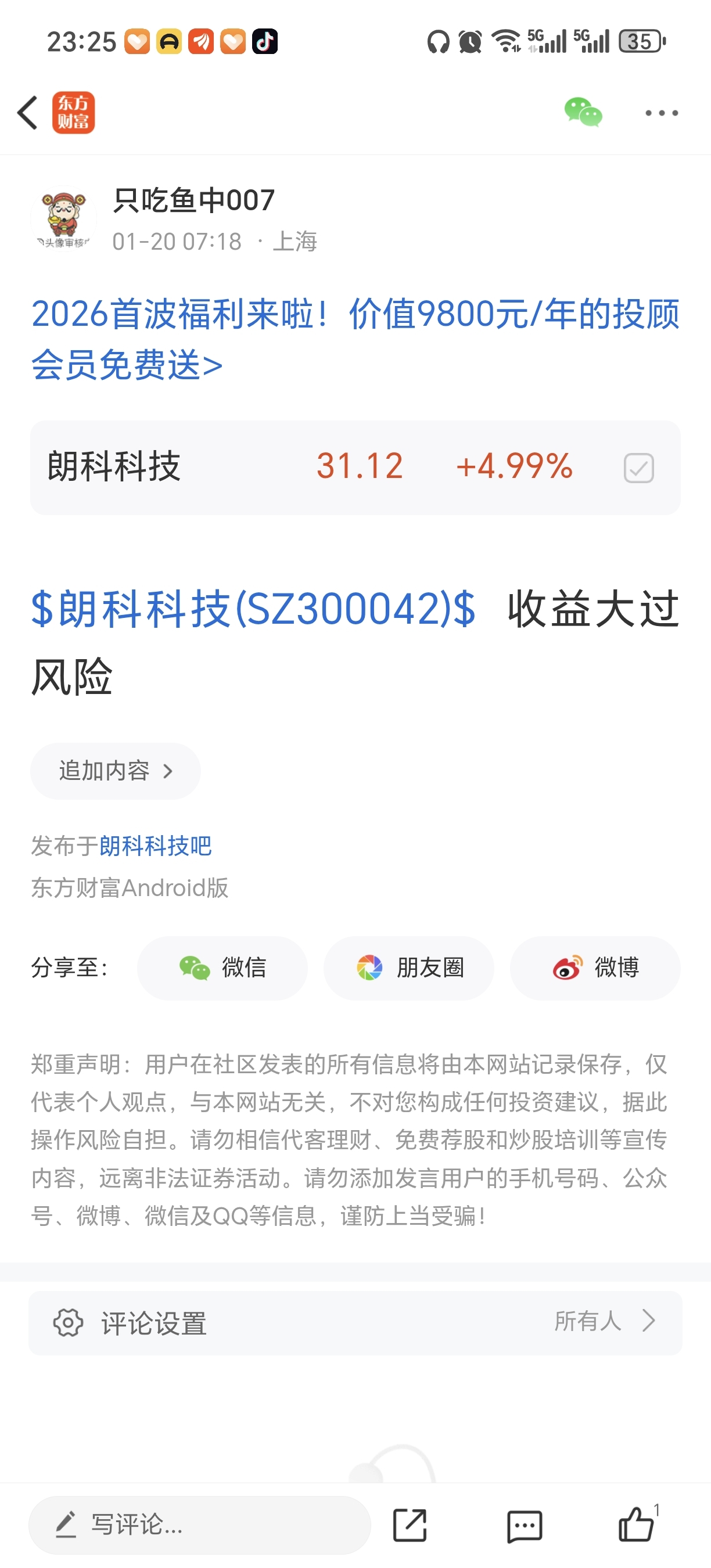 温馨提示: 1.根据《证券法》规定,禁止编造、传播虚假信息或者误导性信息,扰乱证券市场;2.用户在本社区发表的所有资料、言论等仅代表个人观点,与本网站立场无关,不对您构成任何投资建议。用户应基于自己的独立判断,自行决定证券投资并承担相应风险。《东方财富社区管理规定》