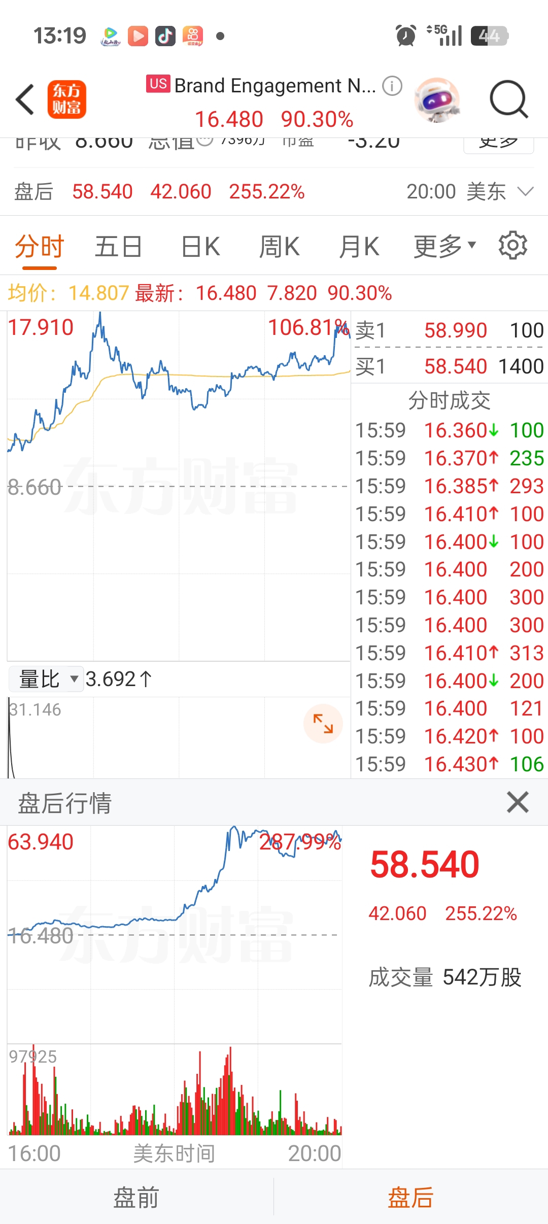 $朗科科技(SZ300042)$ 兄弟们aiAa应用盘后暴涨256%。礼拜一还能买回来吗?