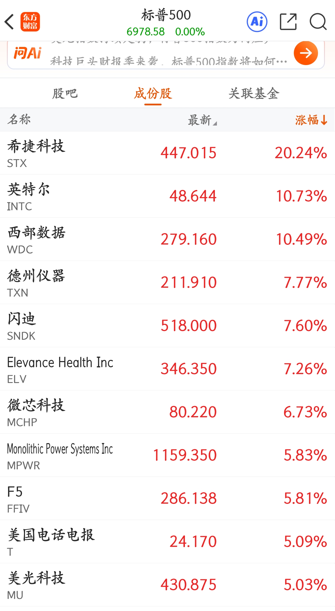 标普涨幅榜被存储霸榜了,朗科的内存条网上买也是一样涨价,没道理压着股价不动
