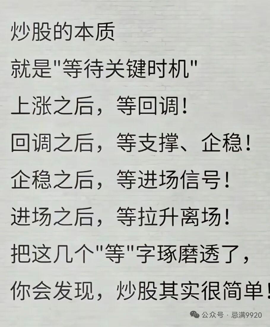 炒股的本质:就是“等待关键时机”!上涨之后,等回调!回调之后,等支撑,企稳!企稳