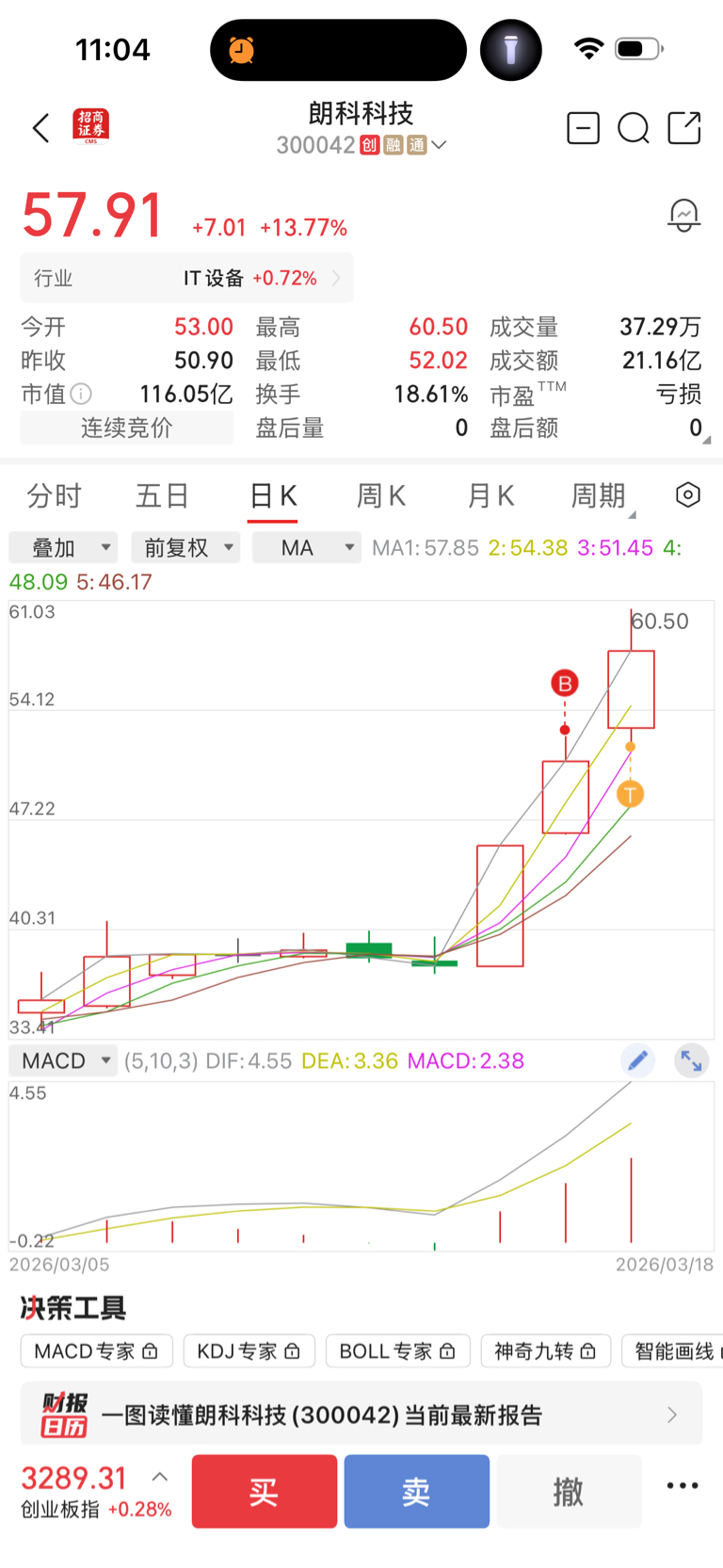$朗科科技(SZ300042)$ 好股不怕高,完美做了个T,神操作。