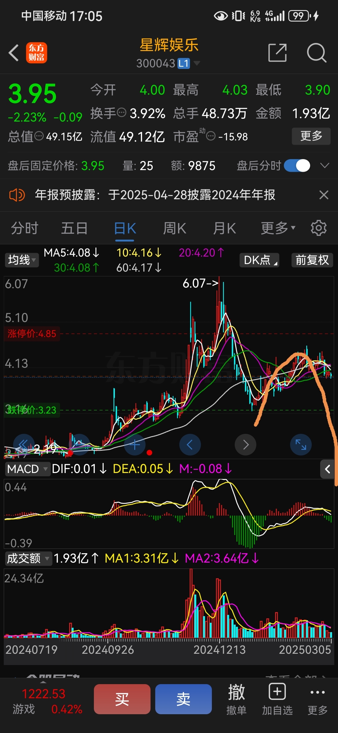 线给你们画好后面的走势就是这样,今天跌破警戒线我清仓走了不和他玩了,拿了半个月做