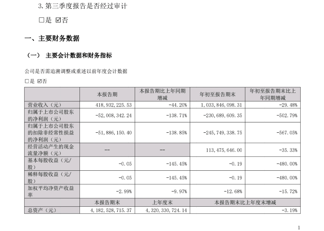 去年三季度单季度亏损5300万,合计亏损2.45亿。今年三季度哪?合计盈利1.5