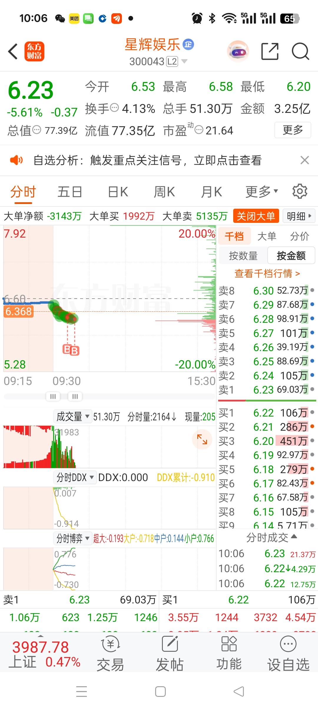 $星辉娱乐(SZ300043)$ 大家嫌弃你,可怜你,再买一点。