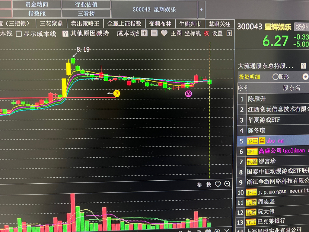 $星辉娱乐(SZ300043)$ 大家挺住,某软件看好这个,我现在把瑞银的成本告诉大家。明天给大家说高盛的。005600.