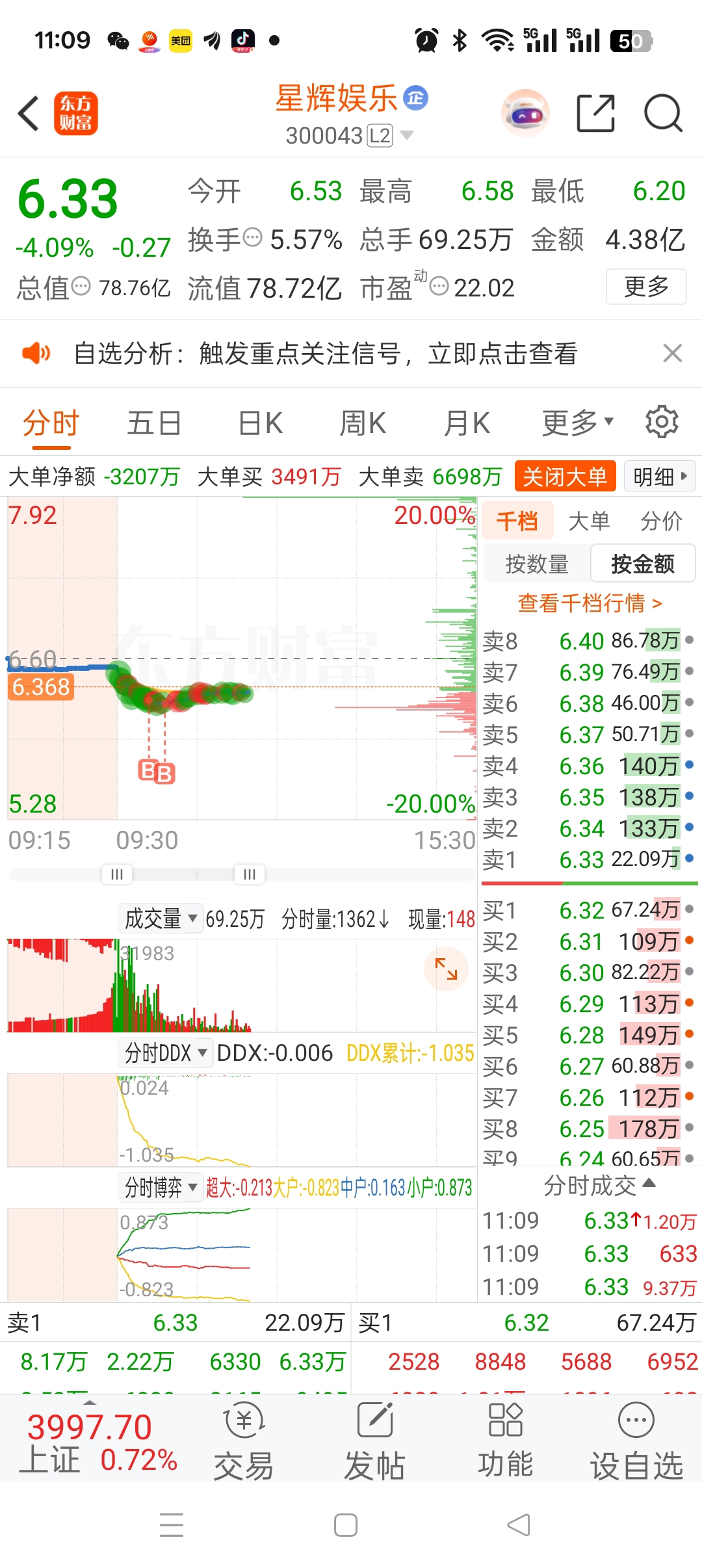 $星辉娱乐(SZ300043)$ 大家可怜可怜他吧,买一点,今天的抄底资金已经盈利了。