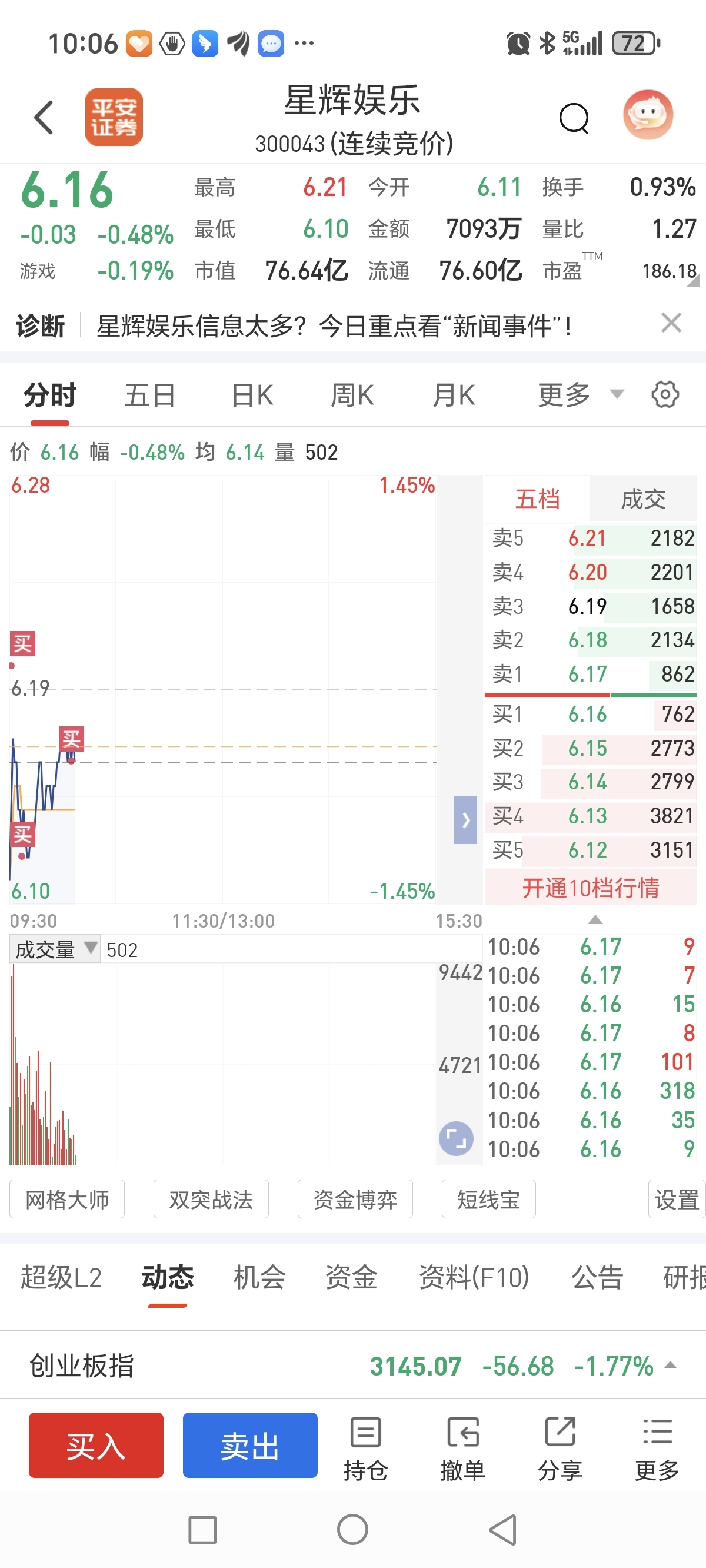 $星辉娱乐(SZ300043)$ 好了,今天操作结束,涨跌看天了,睡觉去了。