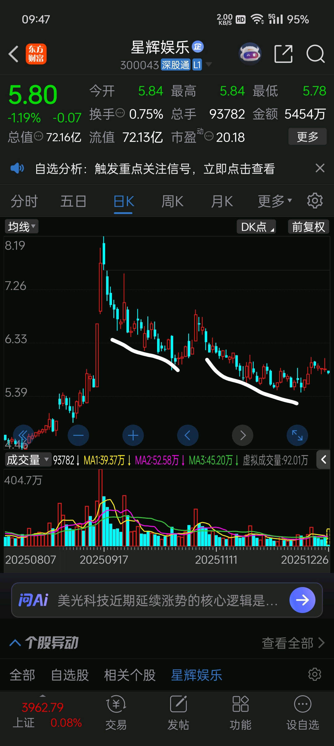 $星辉娱乐(SZ300043)$ 这个走势,有意思
