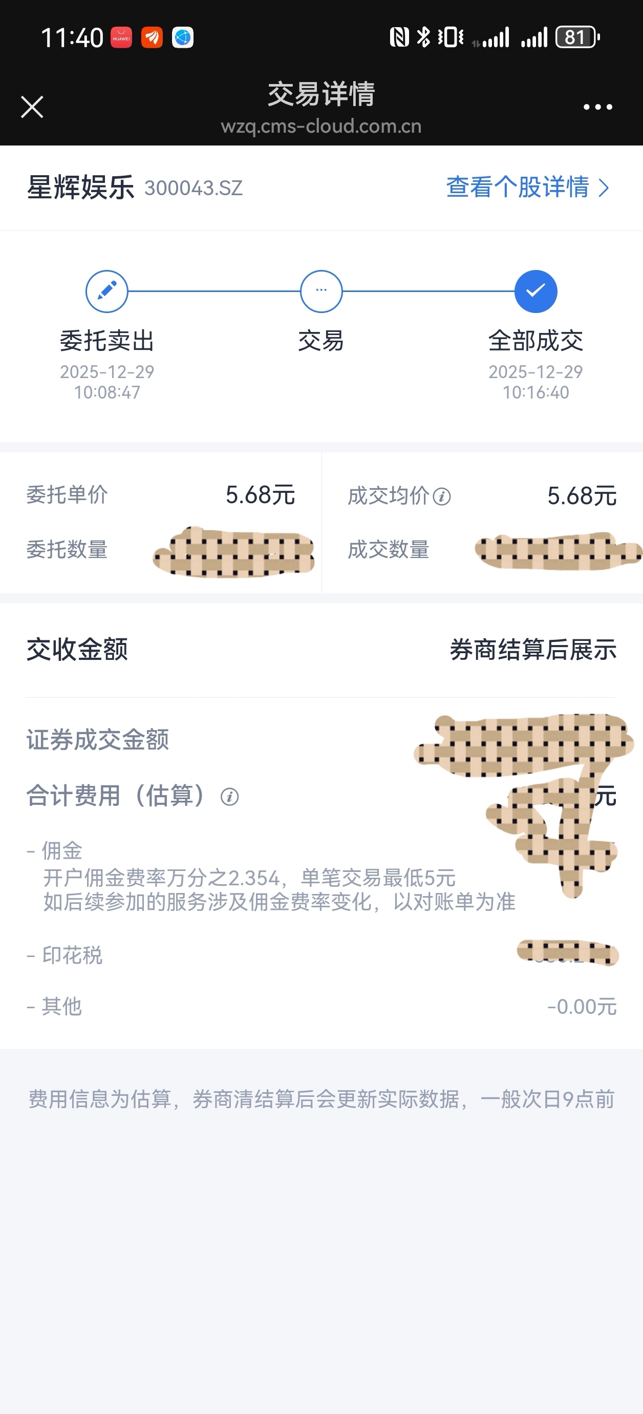 $星辉娱乐(SZ300043)$ 已清仓走人,亏麻了。