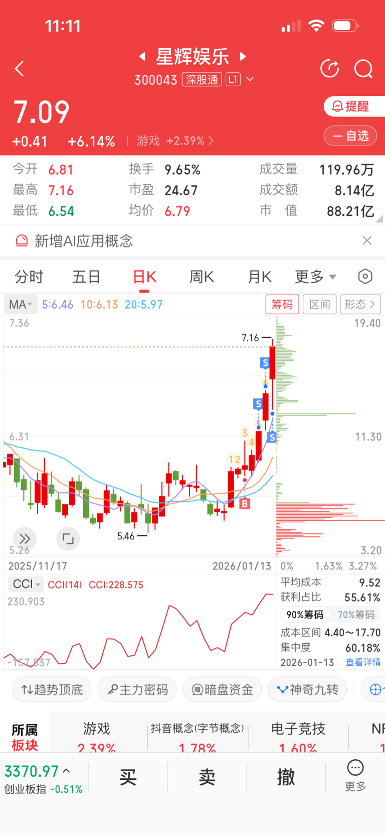 $星辉娱乐(SZ300043)$ 卖飞了,今天被炸出来了